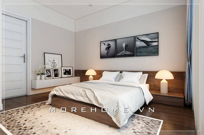 Mẫu giường ngủ gỗ công nghiệp được thiết kế kế kiểu dáng thấp, đơn giản gợi lên cảm giác rộng thoáng cho căn phòng ngủ Master hiện đại