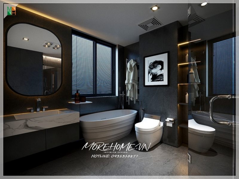 Khi bước vào không gian phòng tắm sang trọng này, gia chủ sẽ được ấn tượng bởi vẻ đẹp của đá ốp tường nhân tạo vân mây cao cấp màu trắng, giúp mang lại cảm giác sạch sẽ và thư giãn cho người sử dụng.
